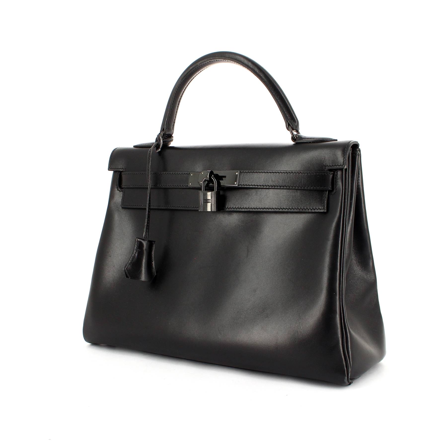 Bolso de mano Hermes Kelly 32 cm en cuero box negro Ref Collector Square: 31 06 11