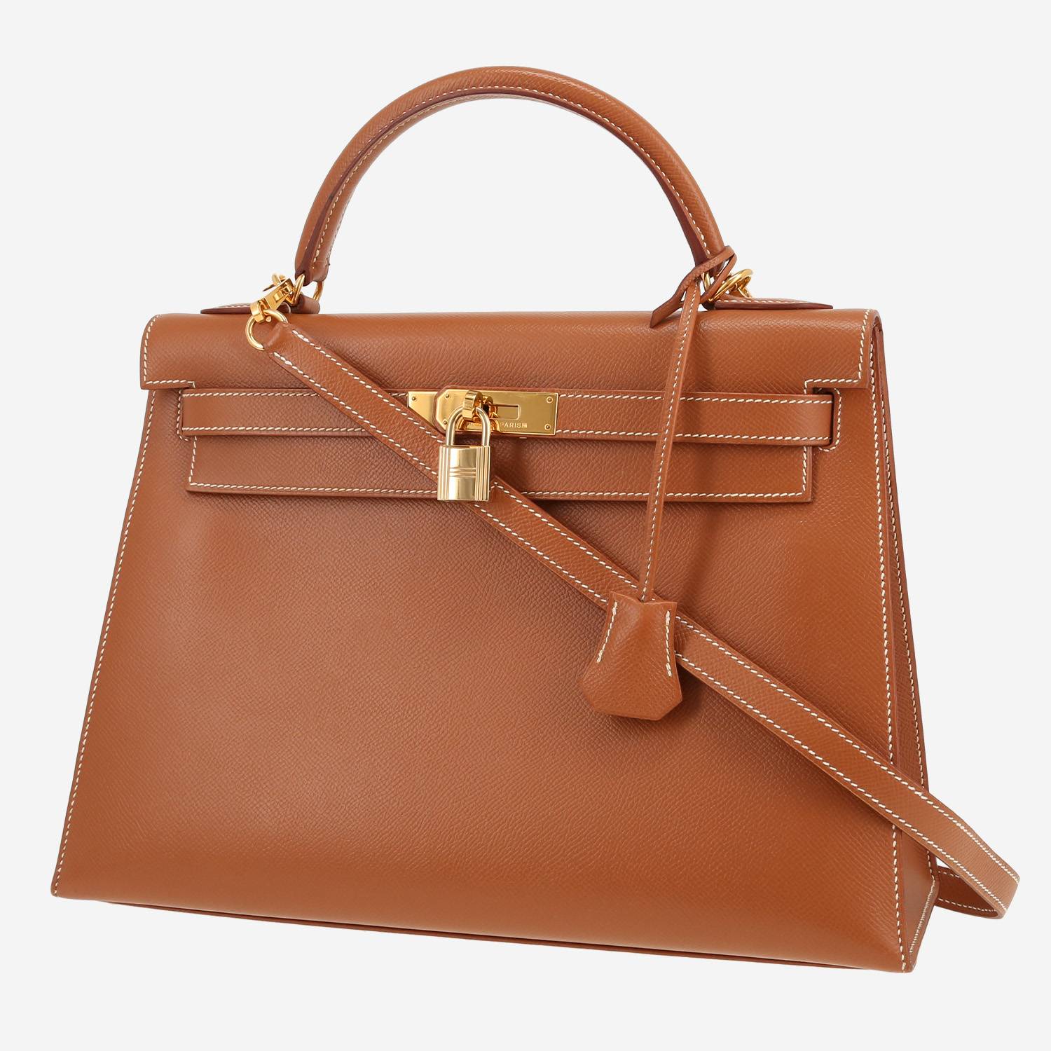 Bolso de mano Hermès Kelly 32 cm en cuero Courchevel color oro Ref Collector Square: 42 74 23