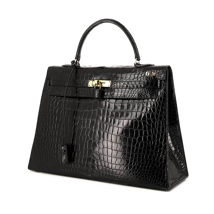 Bolso de mano Hermes Kelly 35 cm en cocodrilo porosus negro Ref Collector Square: 35 27 53
