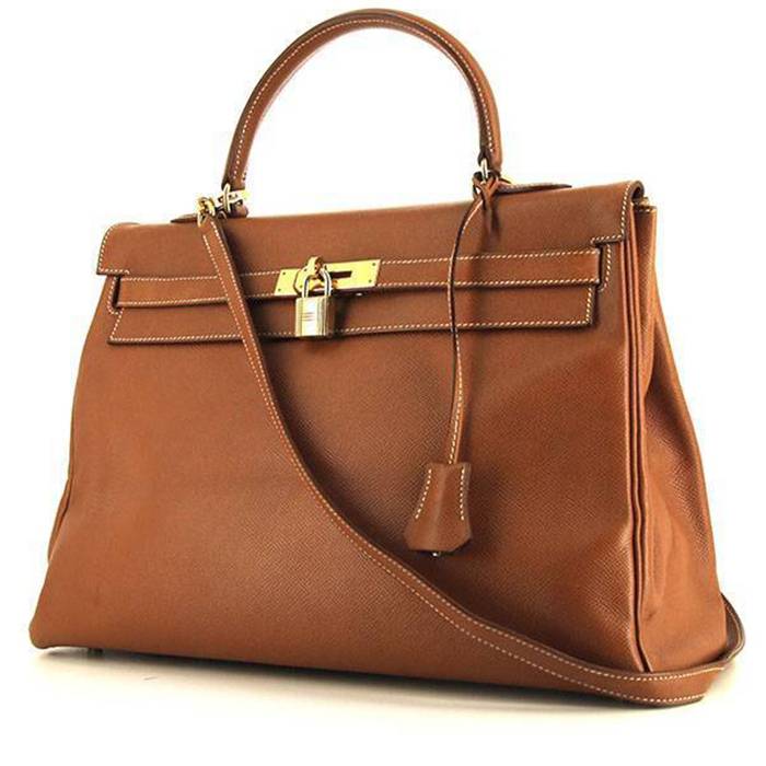 Bolso de mano Hermès Kelly 35 cm en cuero Courchevel color oro Ref Collector Square: 38 07 63