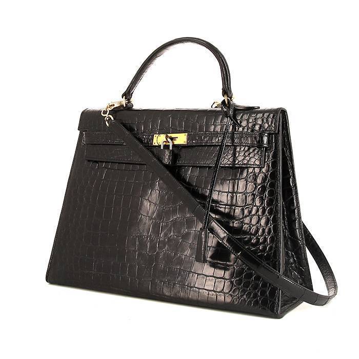 Bolso bandolera Hermès Kelly 35 cm en cocodrilo porosus negro Ref Collector Square: 32 49 39