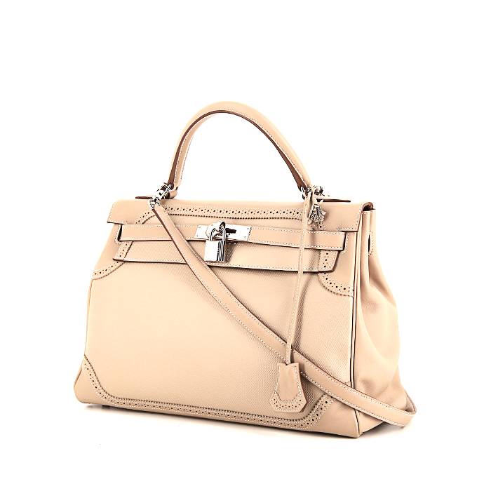 Bolso de mano Hermès Kelly Ghillies en cuero swift gris tórtola Ref Collector Square: 34 42 82