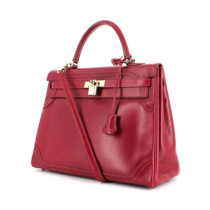 Bolso de mano Kelly 35 cm en cuero box color frambuesa Ref Collector Square: 27 29 11