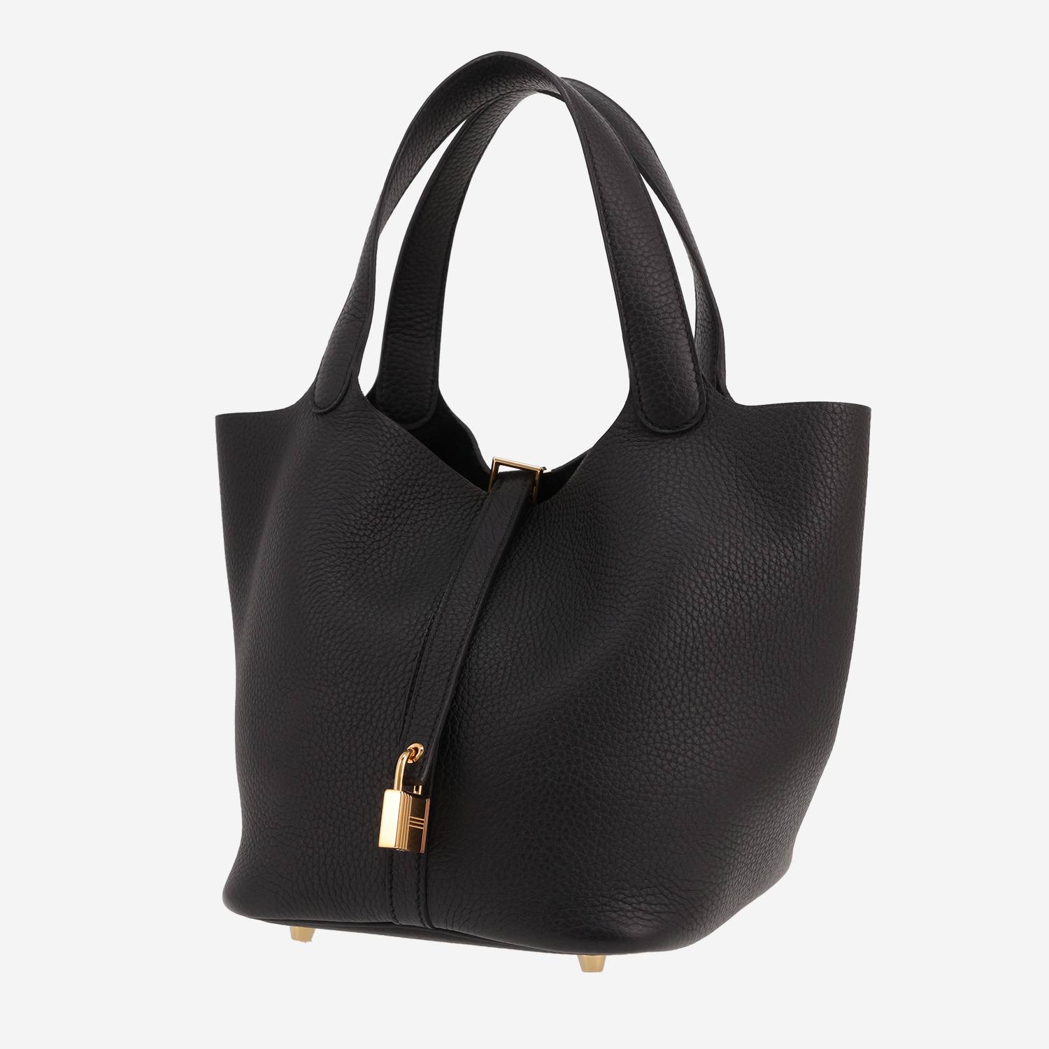 Magnífico bolso de mano Hermès Picotin 22 cm de cuero togo negro, adorno en metal dorado, doble asa de cuero negro para llevar en la mano.