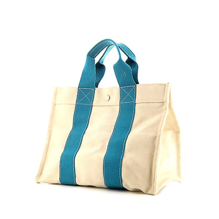 Bolso Cabás Hermes Toto Bag - Shop Bag en lona beige y turquesa Ref Collector Square: 33 76 29