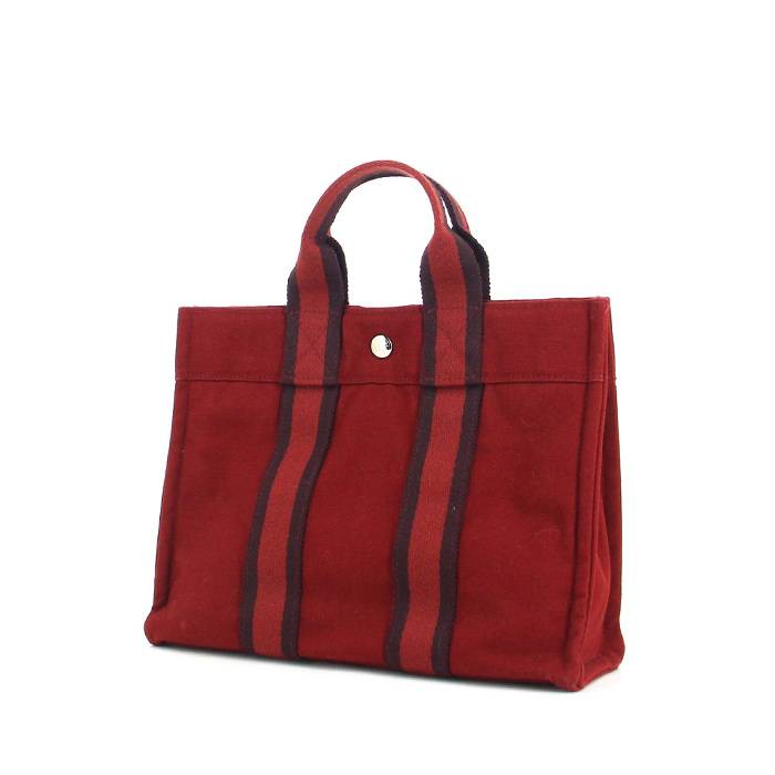 Bolso Cabás Hermes Toto Bag - Shop Bag modelo pequeño en lona roja Ref Collector Square: 32 91 20