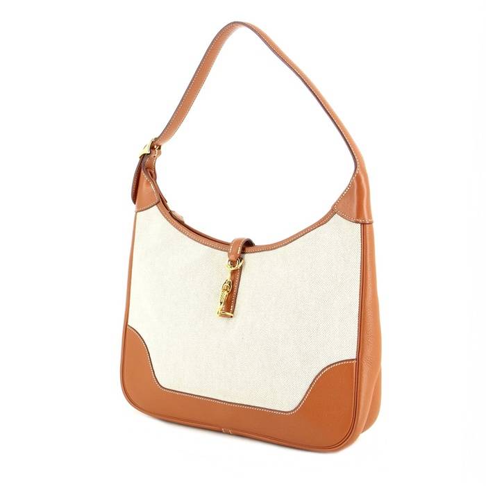 Bolso de mano en lona beige y cuero marrón Ref Collector Square: 21 60 09