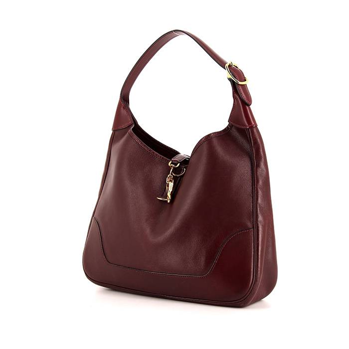 Encantador bolso de mano Hermès Trim de cuero color burdeos, adorno en metal dorado, asa de cuero color burdeos para llevar en la mano o al hombro.