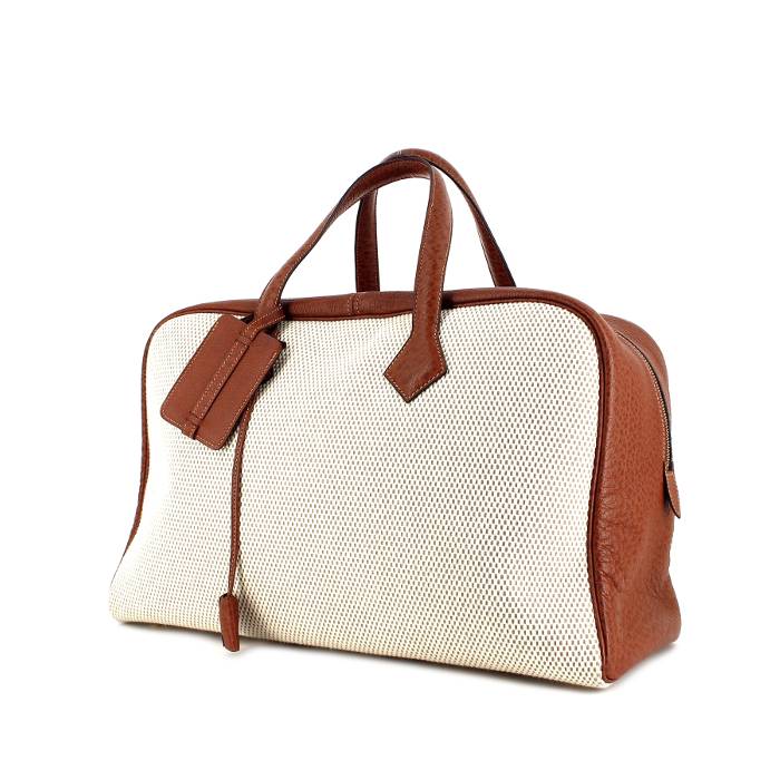 Hermès Victoria 45 cm en lona beige y cuero marrón Ref Collector Square: 26 83 98