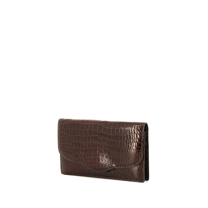 Bolsito de mano Hermès Vintage en cocodrilo marrón Ref Collector Square: 36 75 61