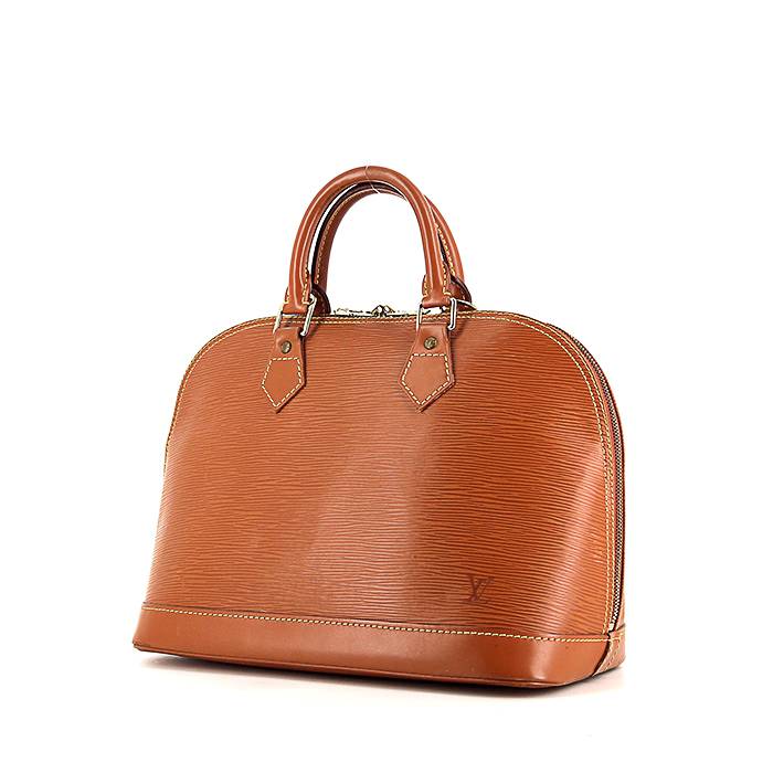 Elegante bolso de mano Louis Vuitton Alma de cuero Epi color oro, adorno en metal dorado, doble asa de cuero color oro para llevar en la mano.