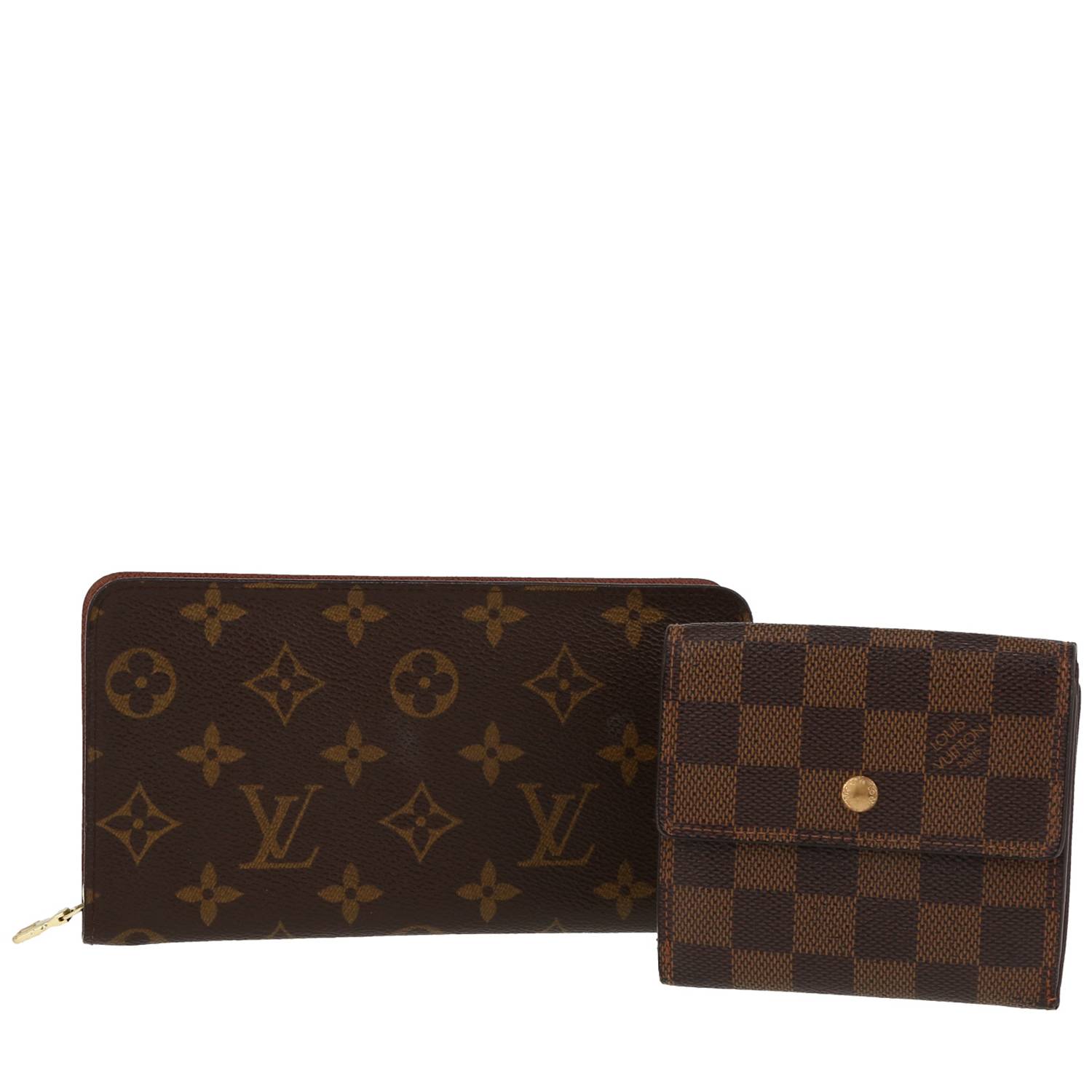 Encantadora billetera Louis Vuitton de lona Monogram revestida marrón, adorno en metal dorado para llevar en la mano.