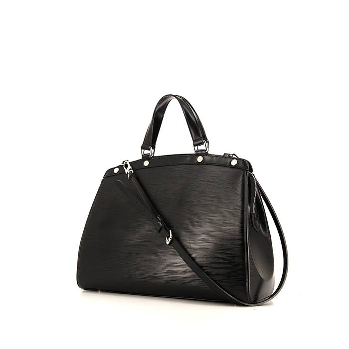 Magnífico bolso de mano Louis Vuitton Brea modelo grande de cuero Epi negro, adorno en metal plateado, doble asa de cuero negro, asa sencilla extraíble y ajustable de cuero negro para llevar en la mano o al hombro.