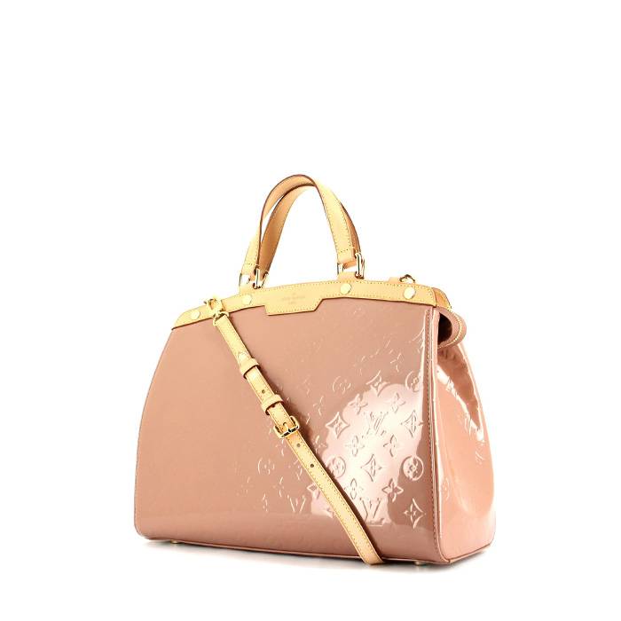 Bolso de mano Louis Vuitton en charol Monogram rosa y cuero natural Ref Collector Square: 32 52 81