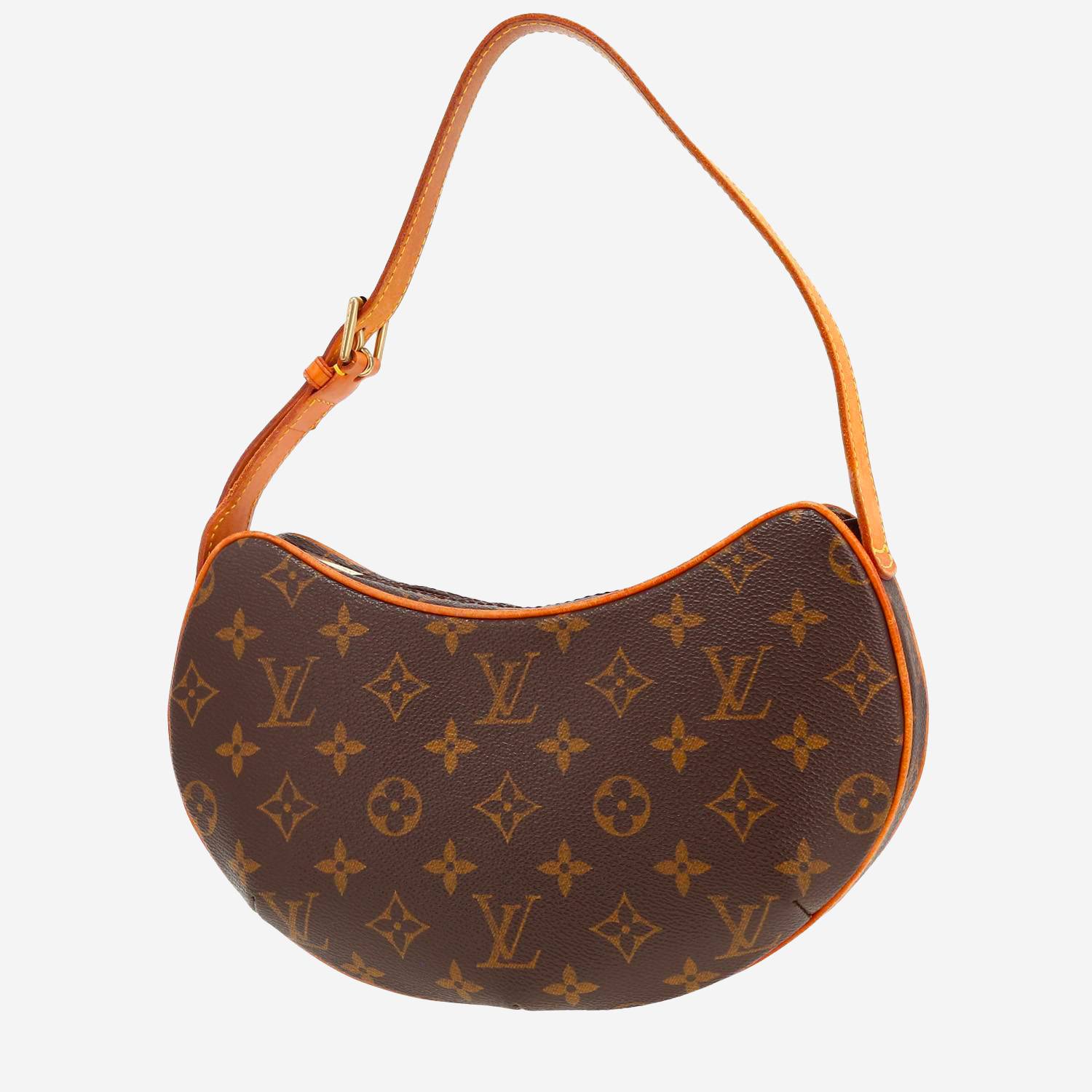 Magnífico bolso de mano Louis Vuitton Croissant modelo pequeño de lona Monogram marrón y cuero natural, adorno en metal dorado, una asa de cuero natural para llevar en la mano o al hombro.
