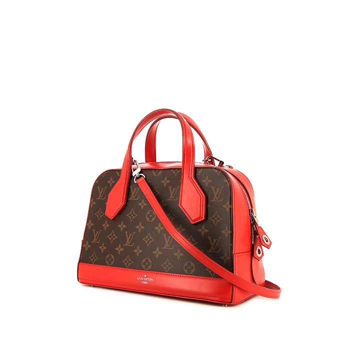 Bolso de mano Louis Vuitton Dora en lona Monogram marrón y cuero rojo Ref Collector Square: 35 32 61