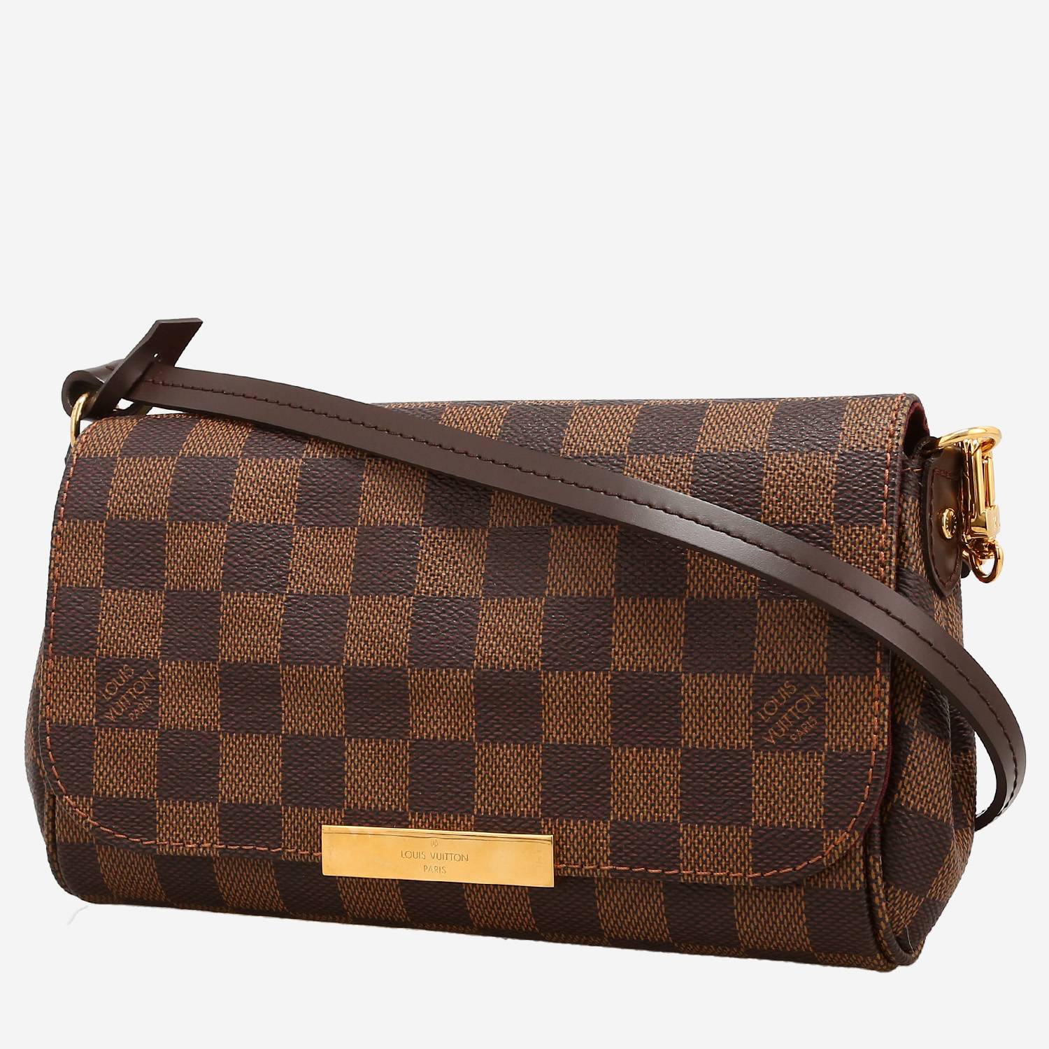 Magnífico bolso bandolera Louis Vuitton Eva de lona a cuadros ébano y cuero marrón, adorno en metal dorado, una asa en cadena de metal dorado, bandolera extraíble de cuero marrón para llevar en la mano o colgado al hombro o cruzado.