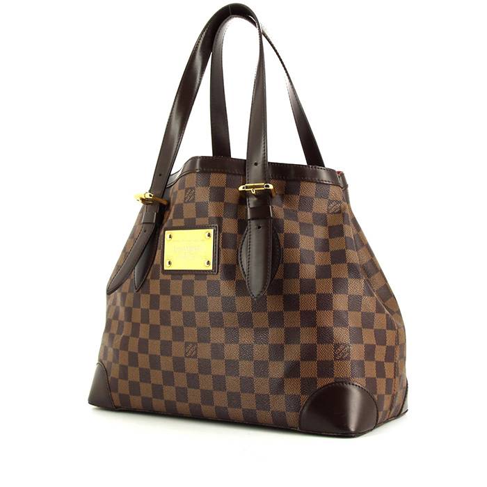 Elegante bolso bandolera Louis Vuitton Hampstead de lona a cuadros ébano y de cuero marrón chocolate, doble asa ajustable de cuero marrón chocolate para llevar en la mano o al hombro.