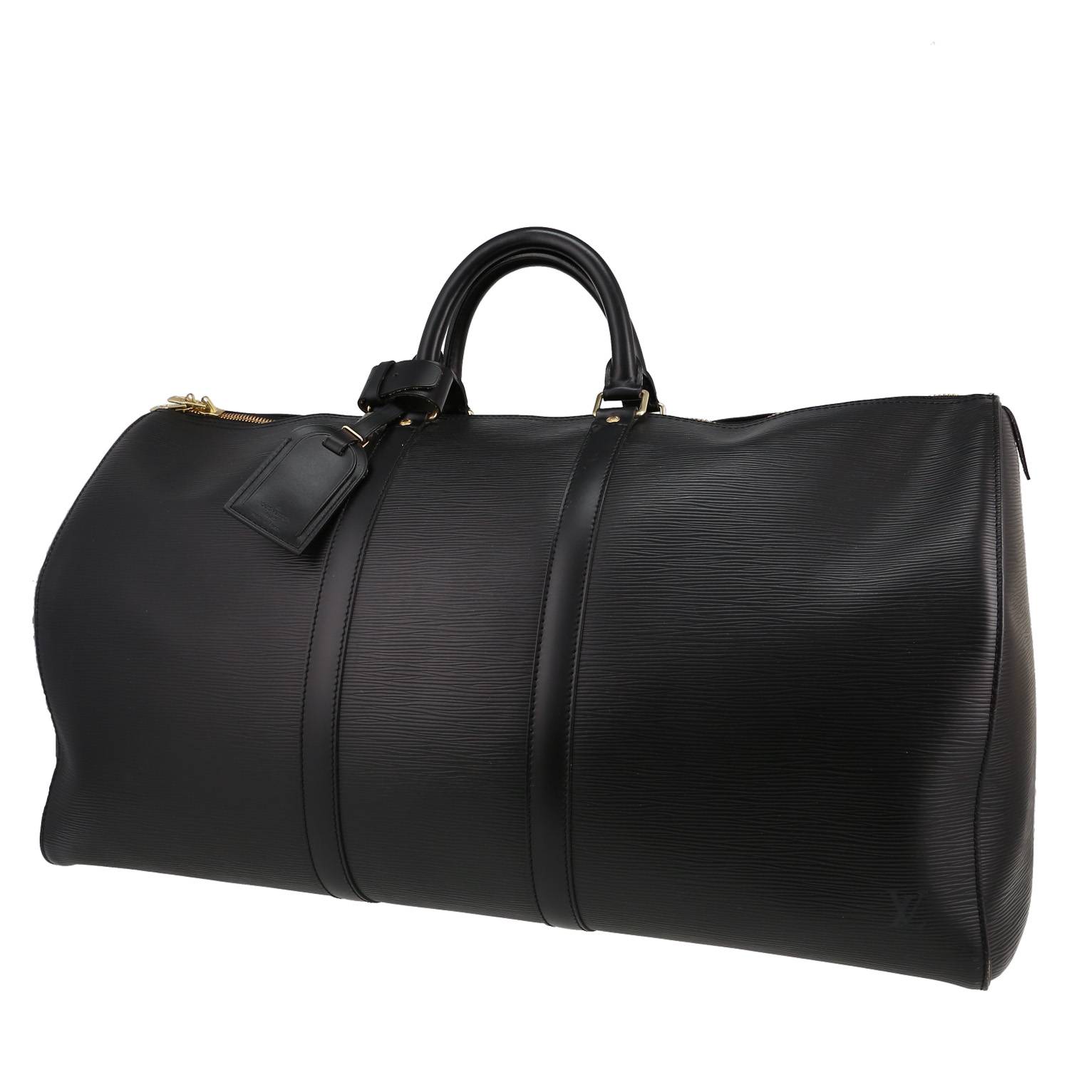 Elegante bolsa de viaje Louis Vuitton Keepall 55 de cuero Epi negro, adorno en metal dorado, doble asa de cuero negro para llevar en la mano.