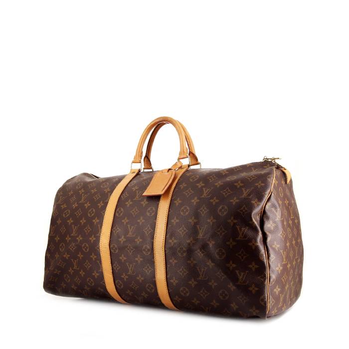 Bolsa de viaje Louis Vuitton Keepall 55 en lona Monogram marrón y cuero natural Ref Collector Square: 36 53 04