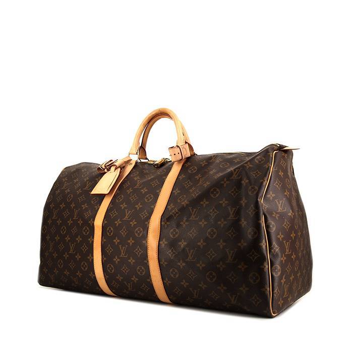 Bolsa de viaje Louis Vuitton Keepall 60 en lona Monogram marrón y cuero natural Ref Collector Square: 36 22 51