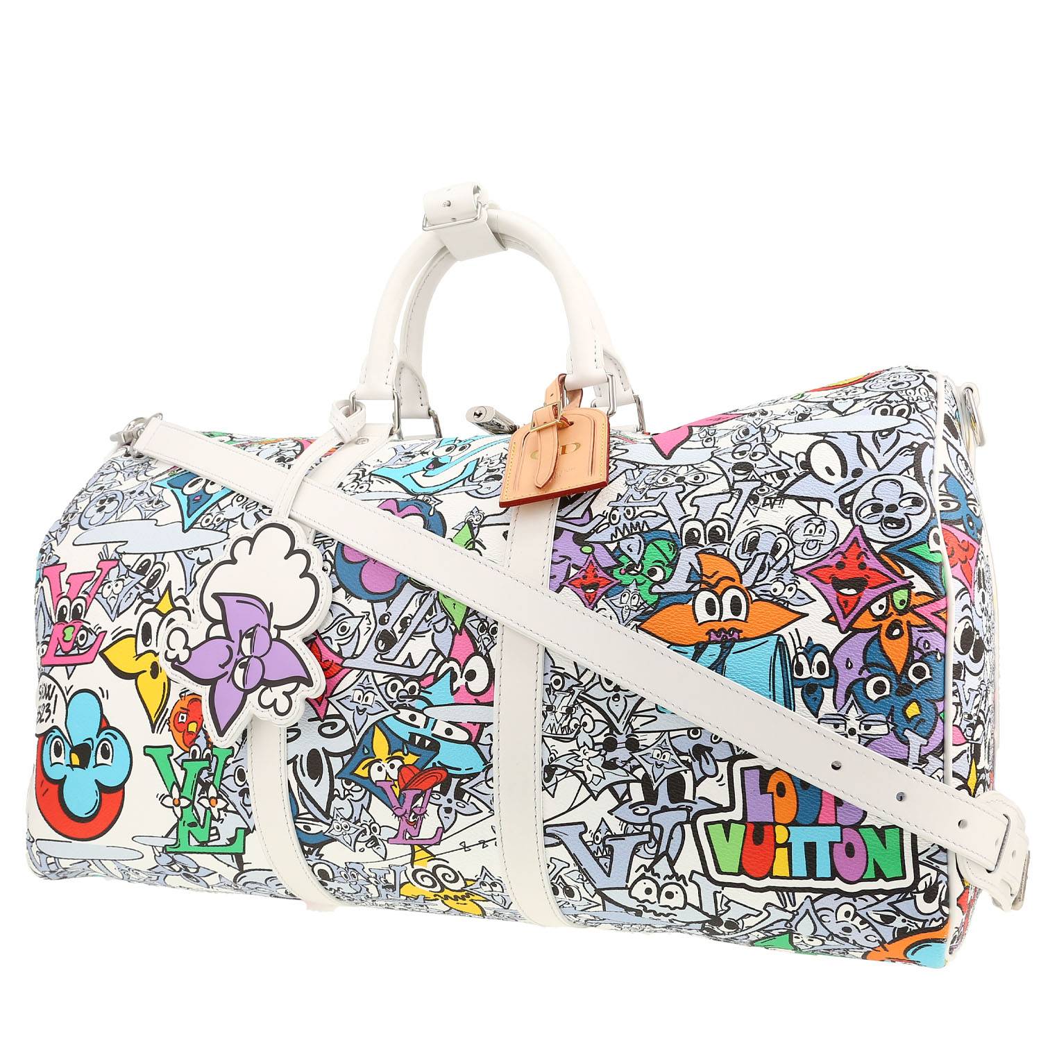 Bolso de fin de semana Louis Vuitton Keepall Editions Limitées Comic en cuero blanco Ref Collector Square: 41 95 65