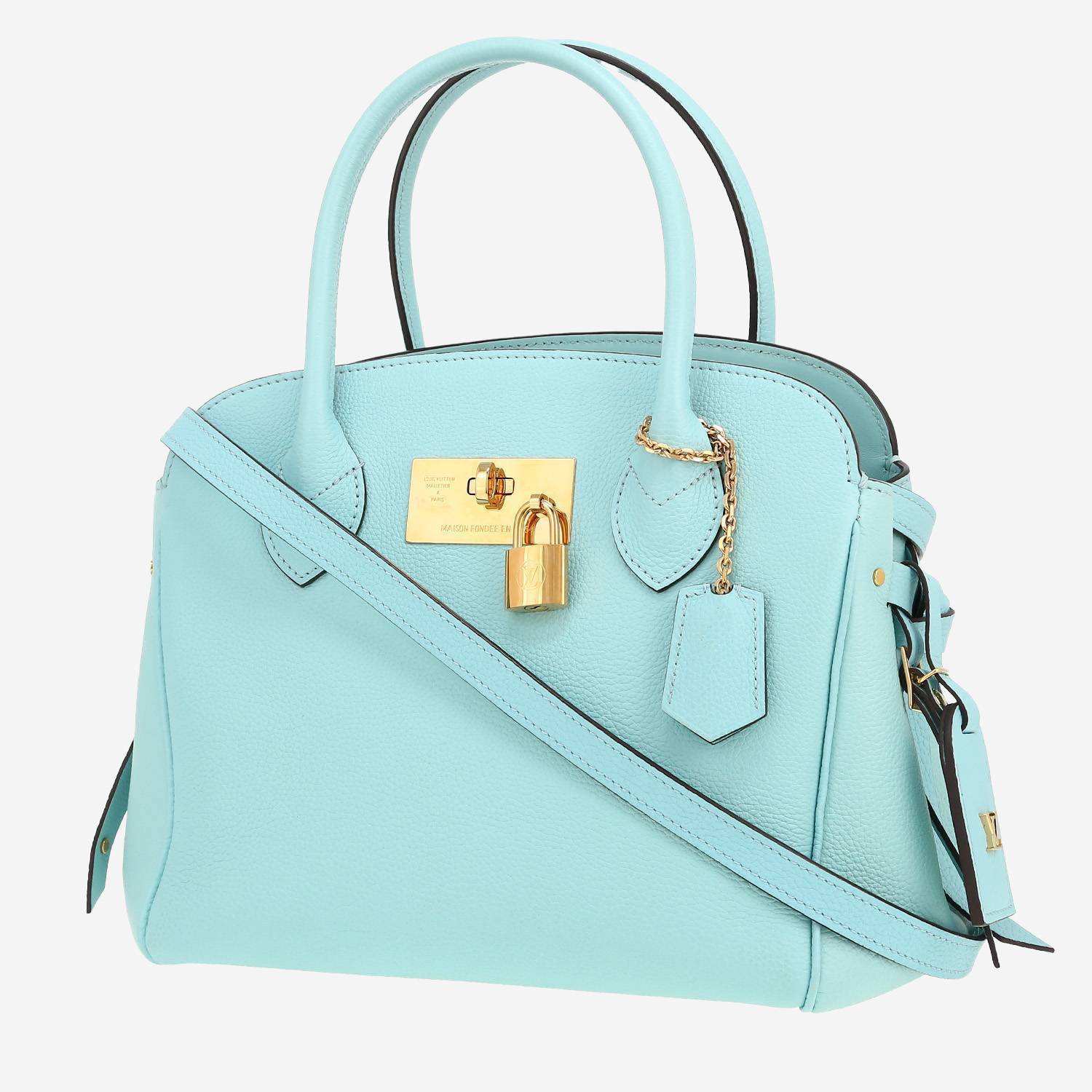 Magnífico bolso de mano Louis Vuitton Milla de cuero granulado azul, adorno en metal dorado, doble asa de cuero azul, una asa extraíble de cuero azul para llevar en la mano o al hombro.