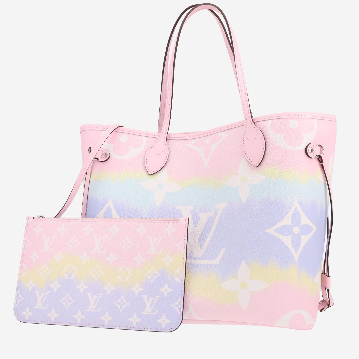 Bolso Cabás Louis Vuitton Neverfull Editions Limitées en lona Monogram rosa, violeta azul y amarilla y cuero rosa Ref Collector Square: 43 12 20