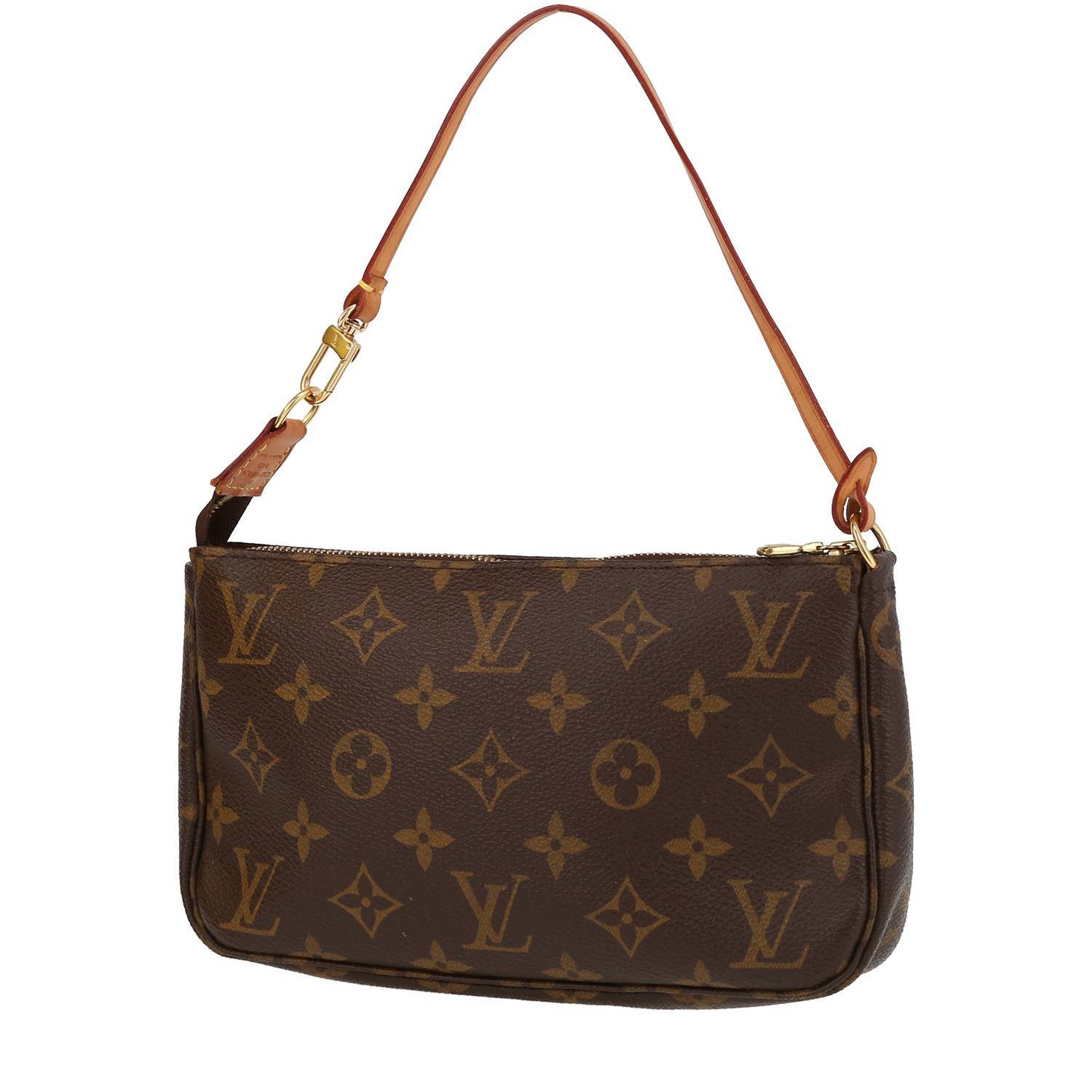 Intemporal bolso/bolsito Louis Vuitton Pochette accessoires de lona Monogram marrón y cuero natural, adorno en metal dorado, una asa de cuero natural para llevar en la mano o al hombro.