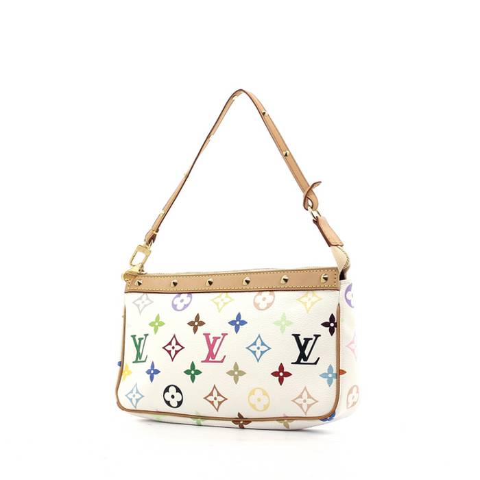 Louis Vuitton bolsito de mano en lona Monogram blanca y cuero natural Ref Collector Square: 28 01 13