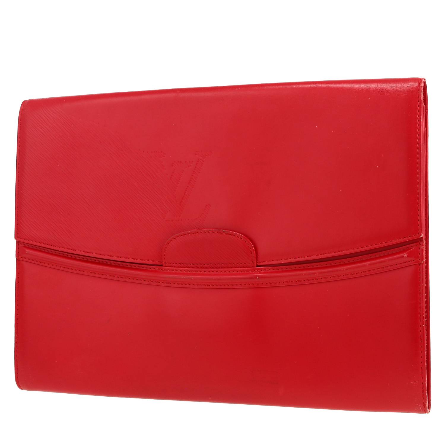 Encantador porta-documentos Louis Vuitton de cuero rojo para llevar en la mano.