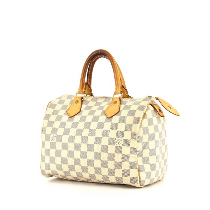 Bolso de mano Louis Vuitton Speedy 25 cm en lona a cuadros azul celeste y cuero natural Ref Collector Square: 31 85 74