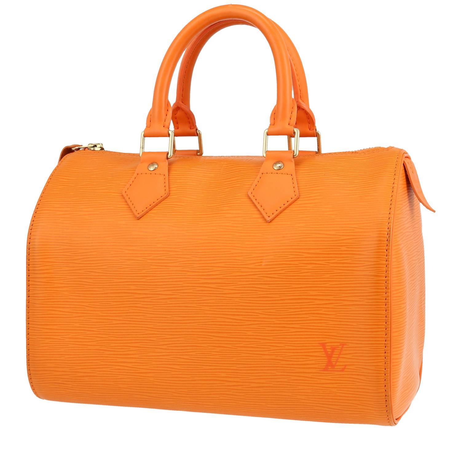 Magnífico bolso de mano Louis Vuitton Speedy 30 de cuero Epi naranja, adorno en metal dorado, doble asa de cuero Epi naranja para llevar en la mano.