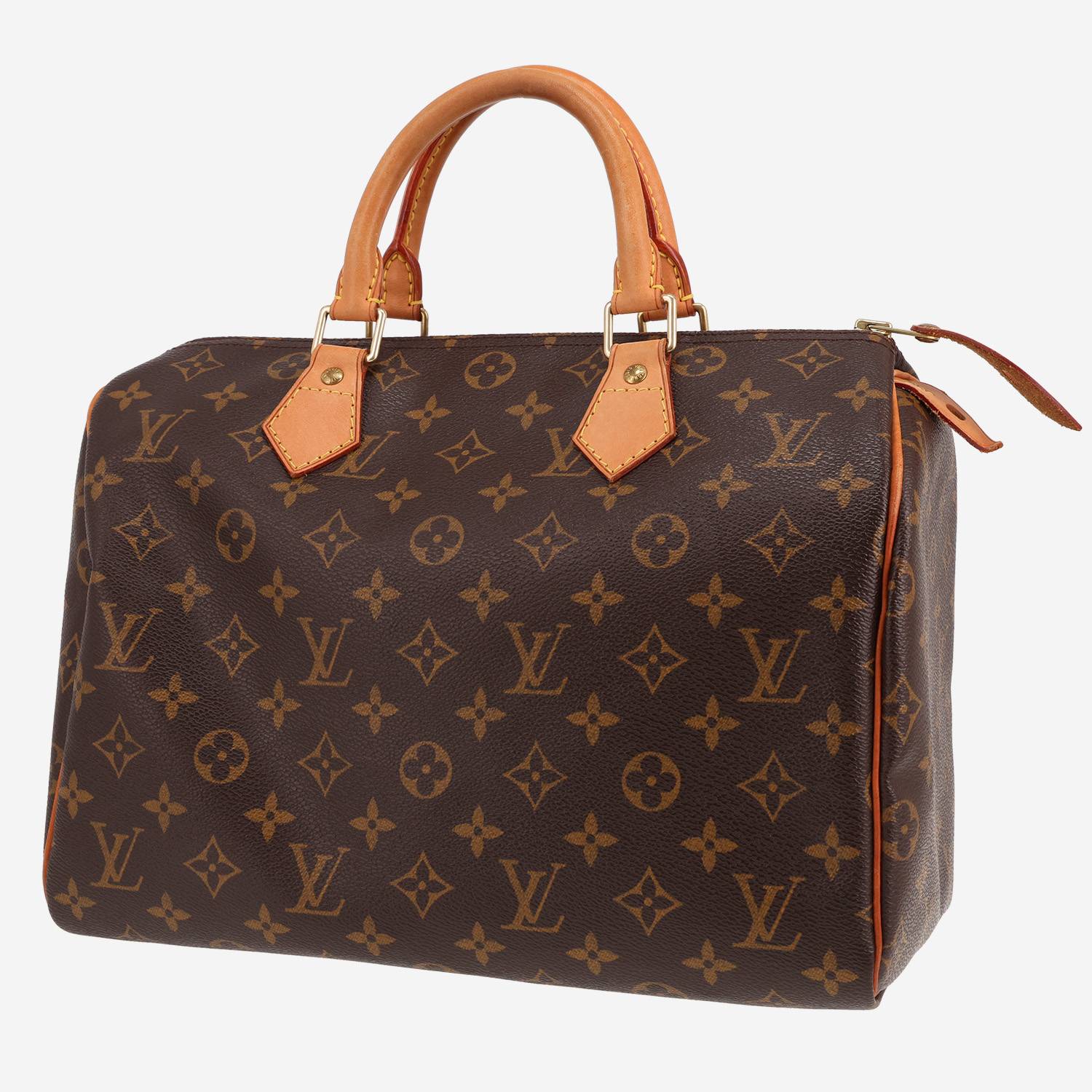 Magnífico bolso de mano Louis Vuitton Speedy 30 de lona Monogram marrón y cuero natural, adorno en metal dorado, doble asa de cuero natural para llevar en la mano.