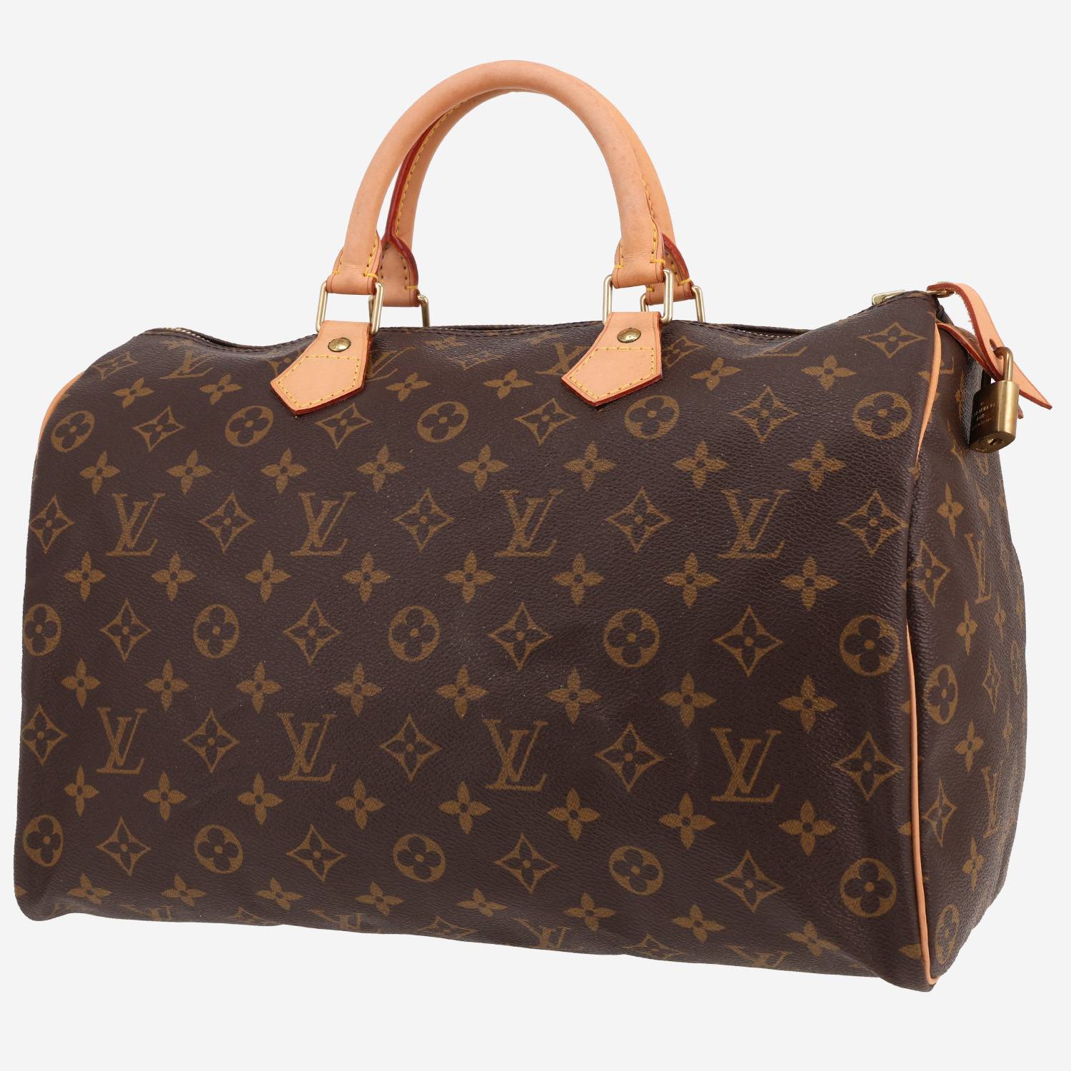Intemporal bolso de mano Louis Vuitton Speedy 35 de lona Monogram y cuero natural, adorno en metal dorado, doble asa de cuero natural para llevar en la mano.