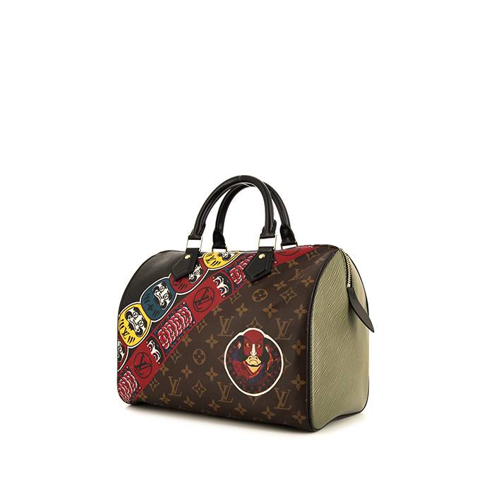 Bolso de mano Louis Vuitton Speedy Editions Limitées en lona Monogram marrón y cuero Epi verde Ref Collector Square: 37 17 19