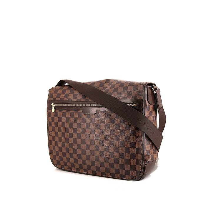 Práctico bolso bandolera Louis Vuitton Spencer de lona a cuadros marrón y de cuero marrón, adorno en metal dorado, bandolera ajustable de lona marrón para llevar al hombro o cruzado.