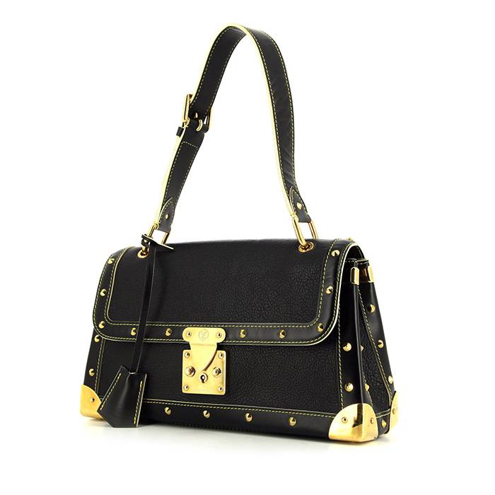 Original bolso de mano Louis Vuitton Talentueux de cuero suhali negro, adorno en metal dorado, sobrecosturas amarillas, asa ajustable de cuero negro para llevar en la mano o al hombro.