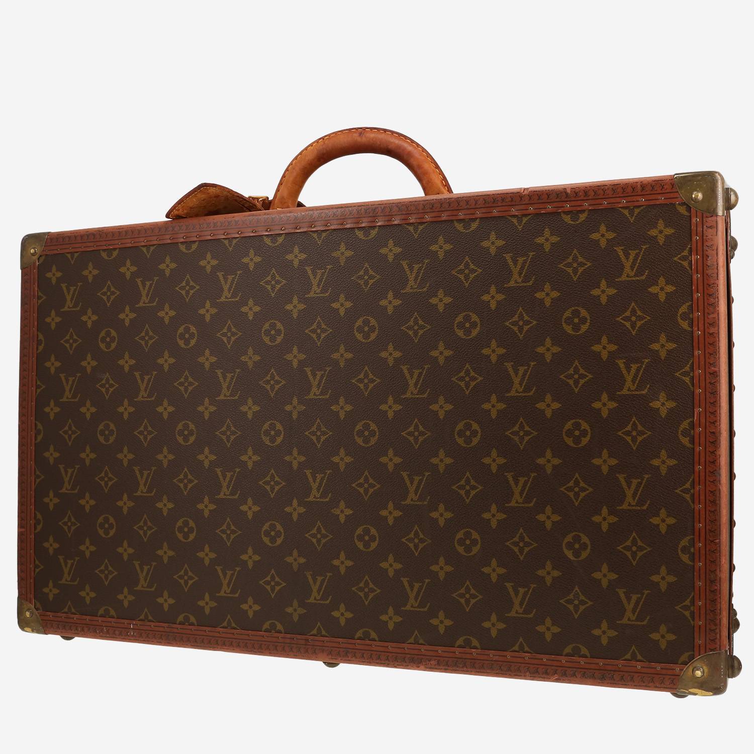 Magnífica maleta Louis Vuitton Géminé de lona Monogram marrón, adorno en latón dorado, asa sencilla de cuero natural para llevar en la mano.