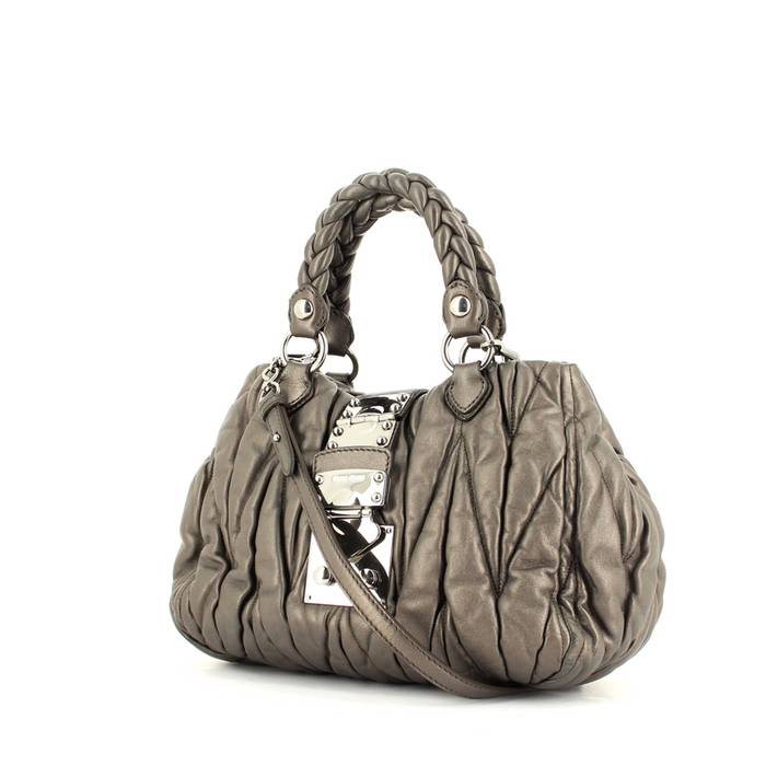 Bolso de mano Miu Miu en cuero acolchado gris metalizado Ref Collector Square: 29 15 93