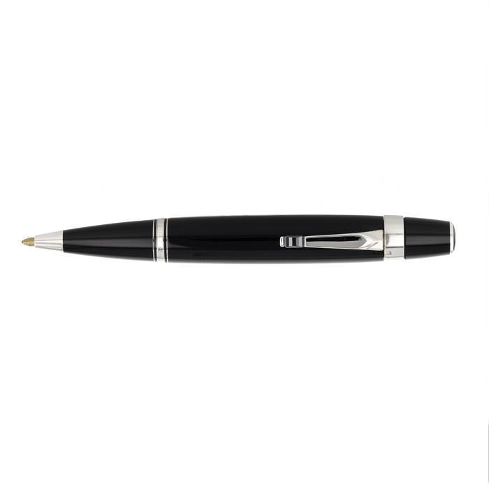 Bolígrafo de la colección "Bohème" de resina negra y metal plateado.