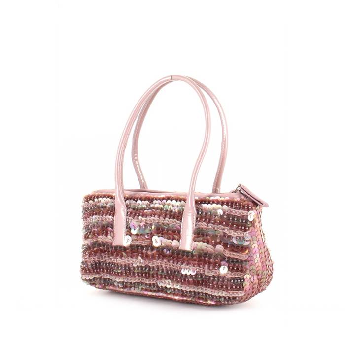 Bolso de mano Prada modelo pequeño en lona y piedras de fantasía rosas Ref Collector Square: 31 04 13
