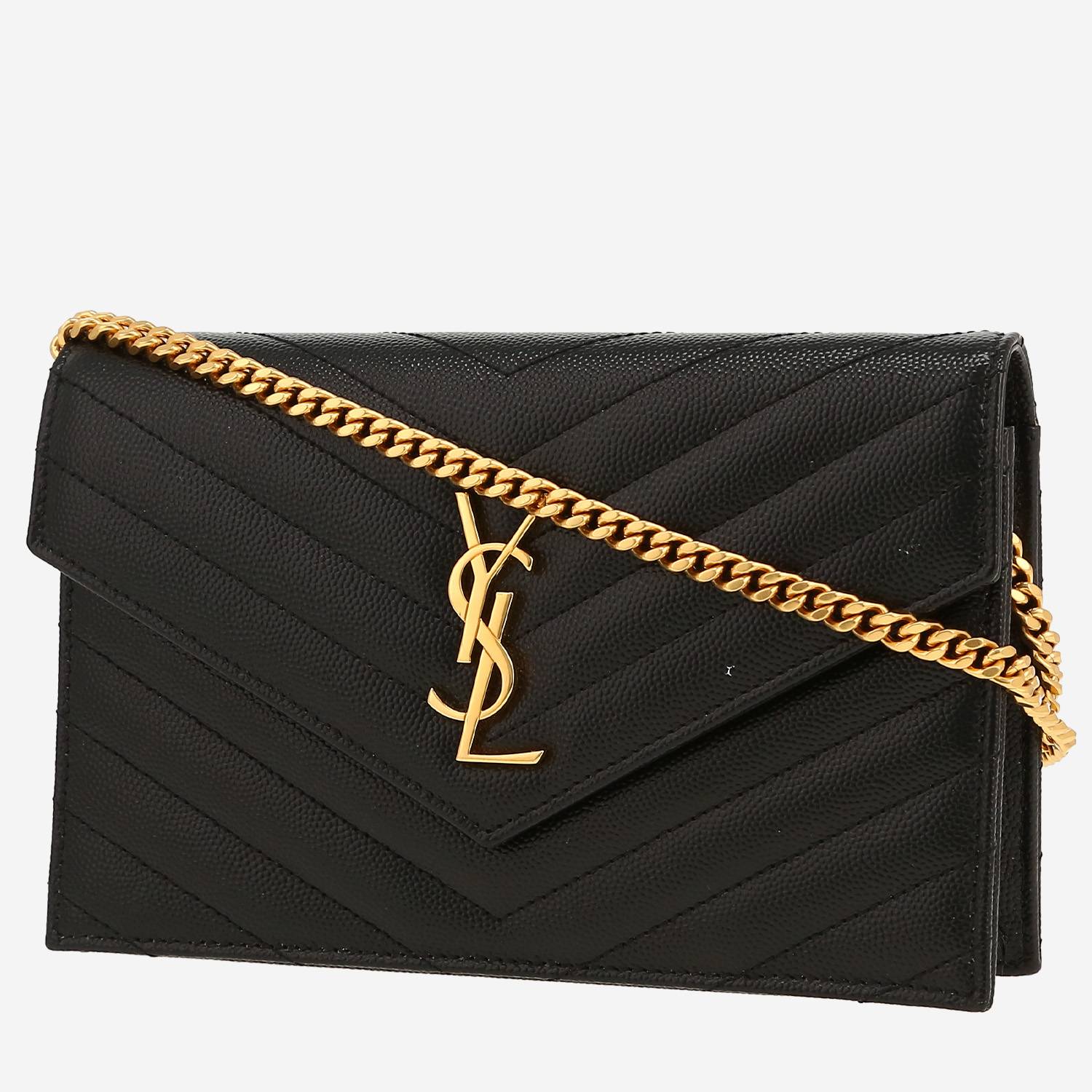 Bolso bandolera Saint Laurent Cassandre Envelope Chain Wallet en cuero granulado acolchado negro Ref Collector Square: 42 24 98