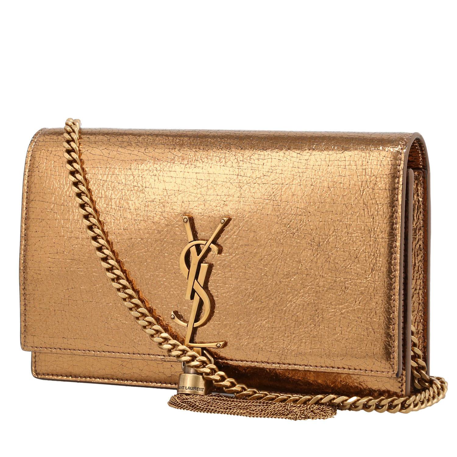 Magnífico bolso bandolera Saint Laurent Kate Pompon de cuero bronce, adorno en metal dorado, una asa en cadena extraíble de metal dorado para llevar en la mano o colgado al hombro o cruzado.