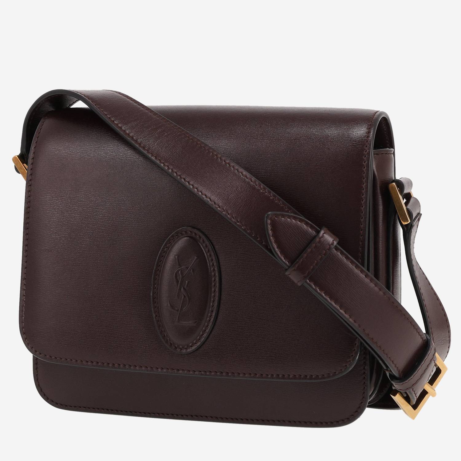 Magnífico bolso bandolera Saint Laurent Le 61 de cuero color berenjena, adorno en metal dorado, una asa ajustable de cuero color berenjena para llevar en la mano o colgado al hombro o cruzado.