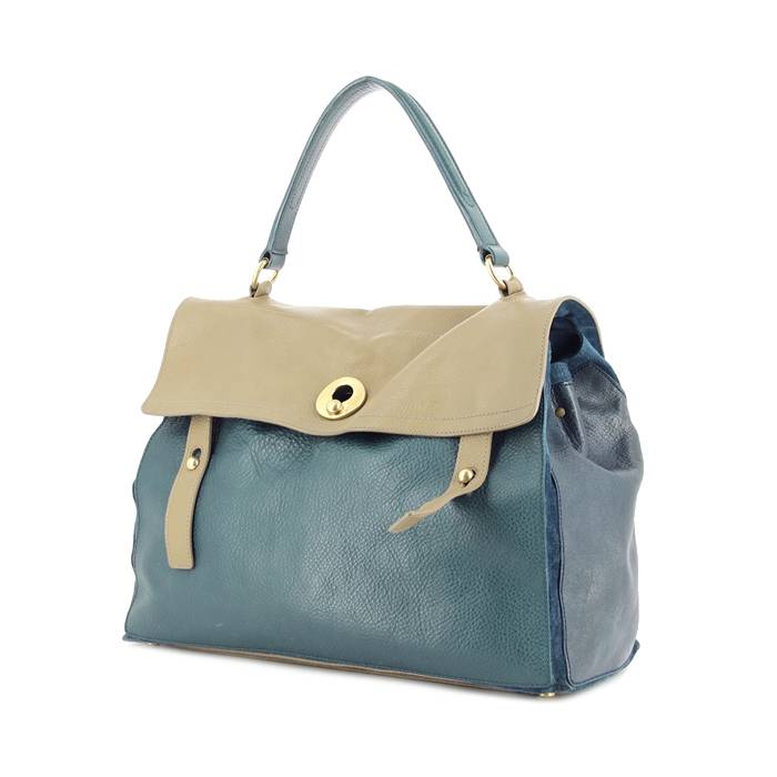 Bolso Muse Two modelo grande en cuero azul verdoso azul marino y beige Ref Collector Square: 25 38 47