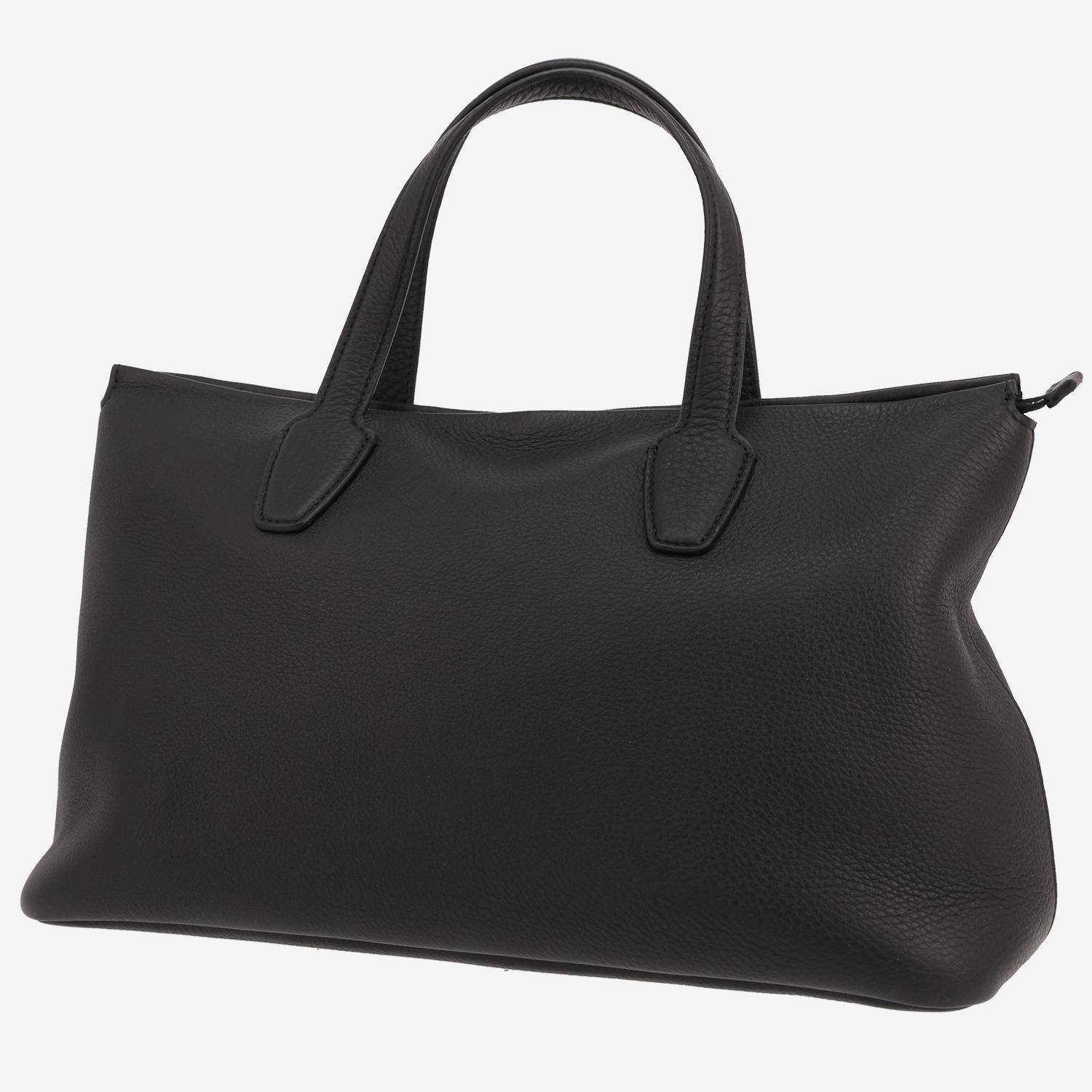 - Forro interior de cuero negro, un bolsillo con cremallera.