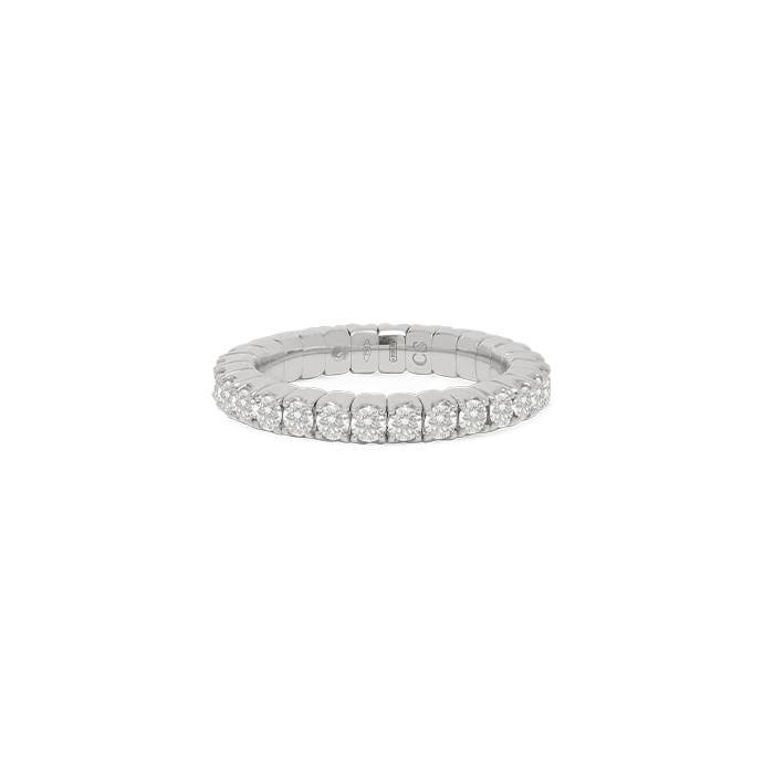 Muy bonita alianza semiflexible de oro blanco y diamantes, compuesta de una sucesión de 27 diamantes de talla brillante en total 1.19 quilate, realzada de un elegante engaste articulado.