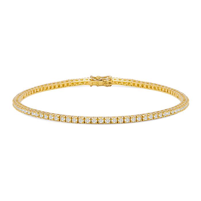 Muy bonito brazalete de oro amarillo y diamantes, compuesto de un delgado engaste de oro amarillo, adornado undefined de diamantes de talla brillante pesando en total 1.07 quilate.