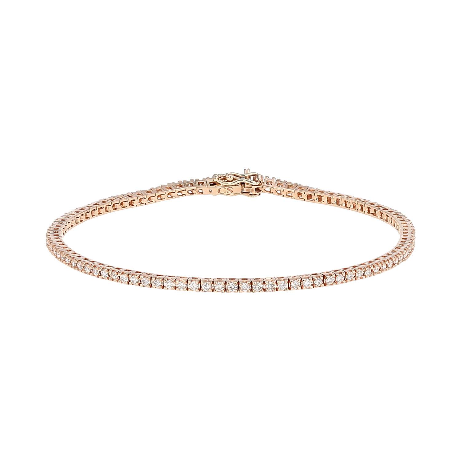 Muy bonito brazalete de oro rosa y diamantes, compuesto de un elegante engaste de oro rosa finamente engastado de diamantes de talla brillante en total 1.06 quilate.
